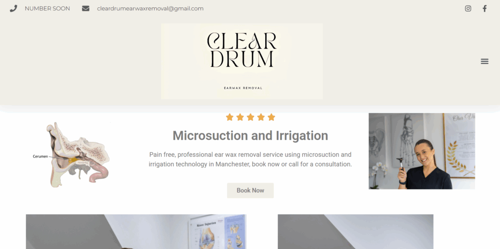 Cleardrum UK requested a simplistic website that showcased their ear wax removal services based in Manchester/Liverpool area. The website has limited functions, including information pages and links to a booking page. All designed exactly to the specifications of Cleardrum.