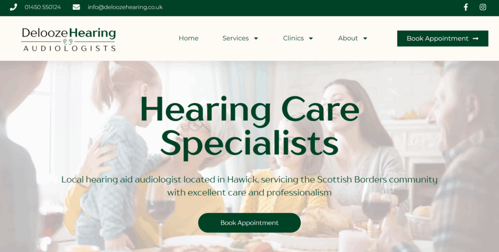 Delooze Hearing is an audiology clinic located in the Scottish Borders and required a website that displayed all of their services, contact information and clinic information. Alongside a blog where they can keep their clients informed on recent information and an integration with their online booking platform.